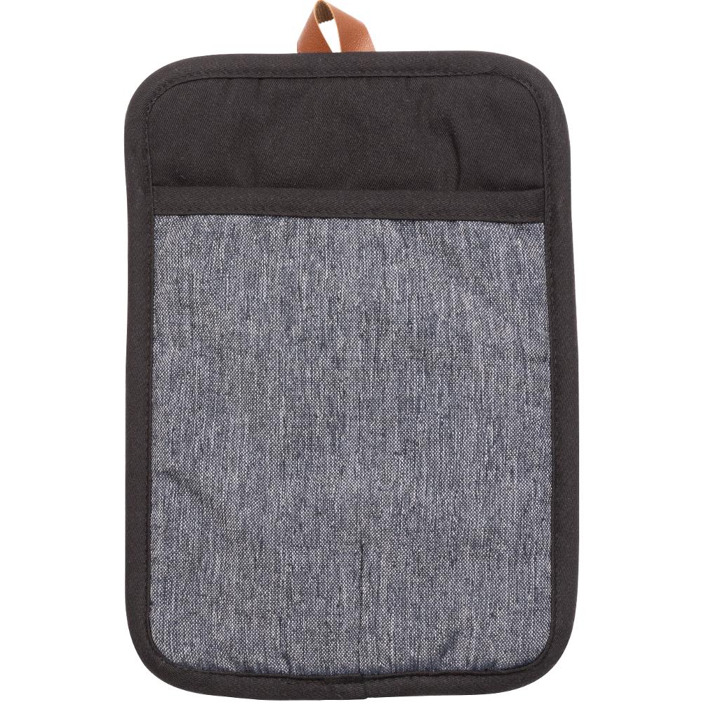 Az alátét hőálló textilből készült, egyik oldala pamut zsebbel, a másik oldala szilikon a jobb hőállóság és a csúszásmentes felület érdekében.
