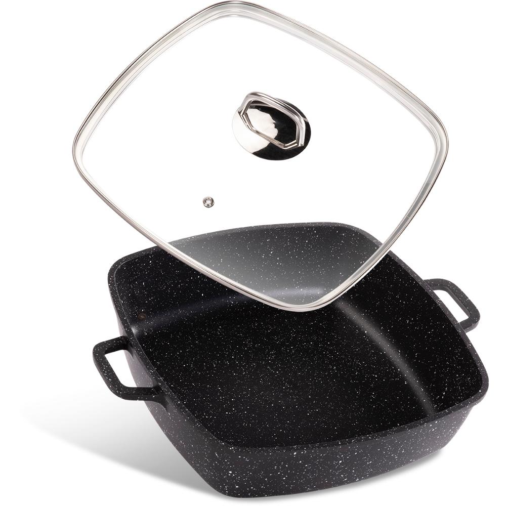 Edények tapadásmentes felülettel van ellátva, amely ellenáll a karcolásnak és az égésnek, vastag aljjal, nagyon elegáns fogantyúkkal a nagyobb biztonság, funkcionalitás és kényelem érdekében.