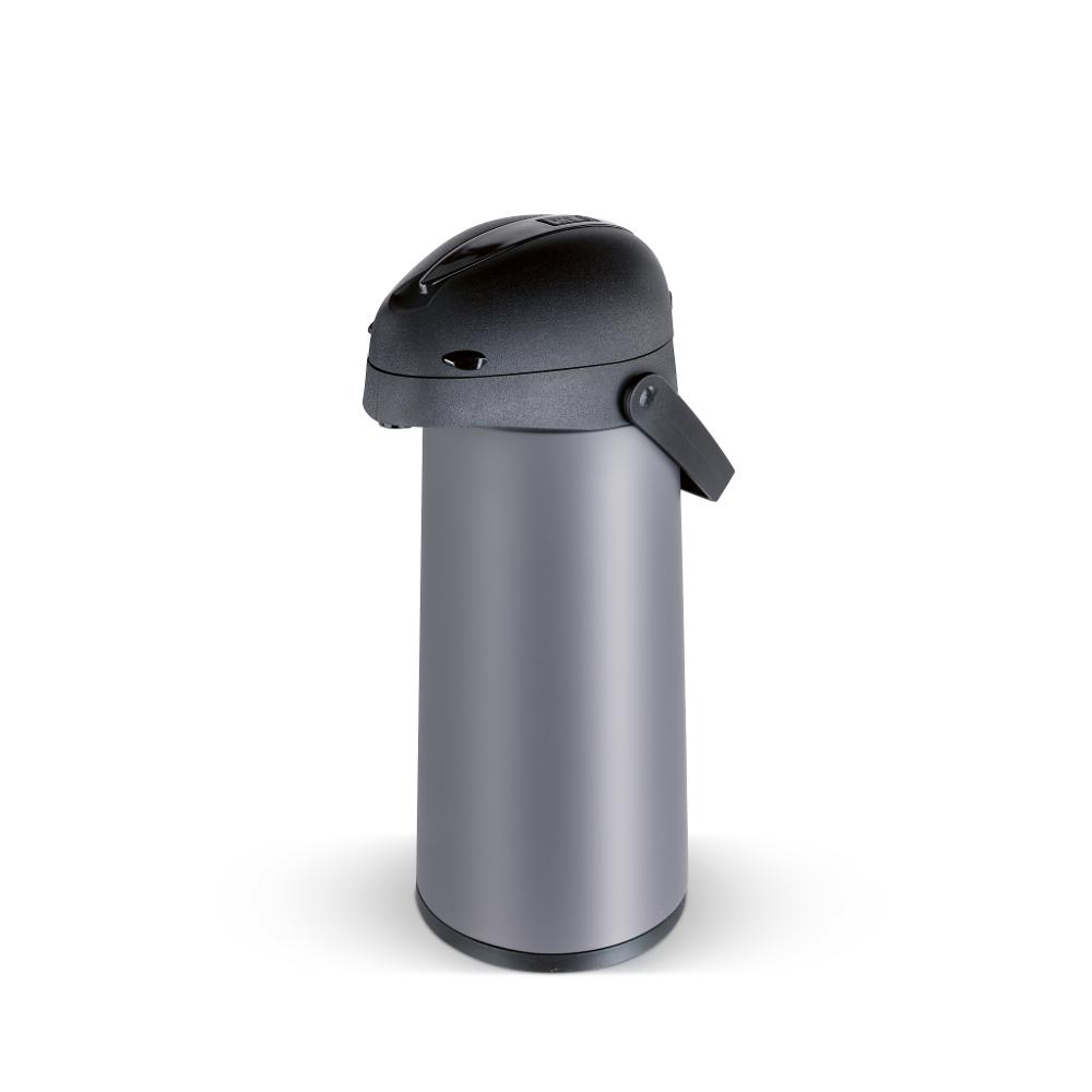 Termos z pompką dozującą wykonany z wytrzymałego plastiku z wewnętrznym wkładem szklanym. Wkład ma właściwości termoizolacyjne, zapewniające utrzymanie temperatury ciepłych i zimnych napojów. Składany uchwyt ułatwia przenoszenie.