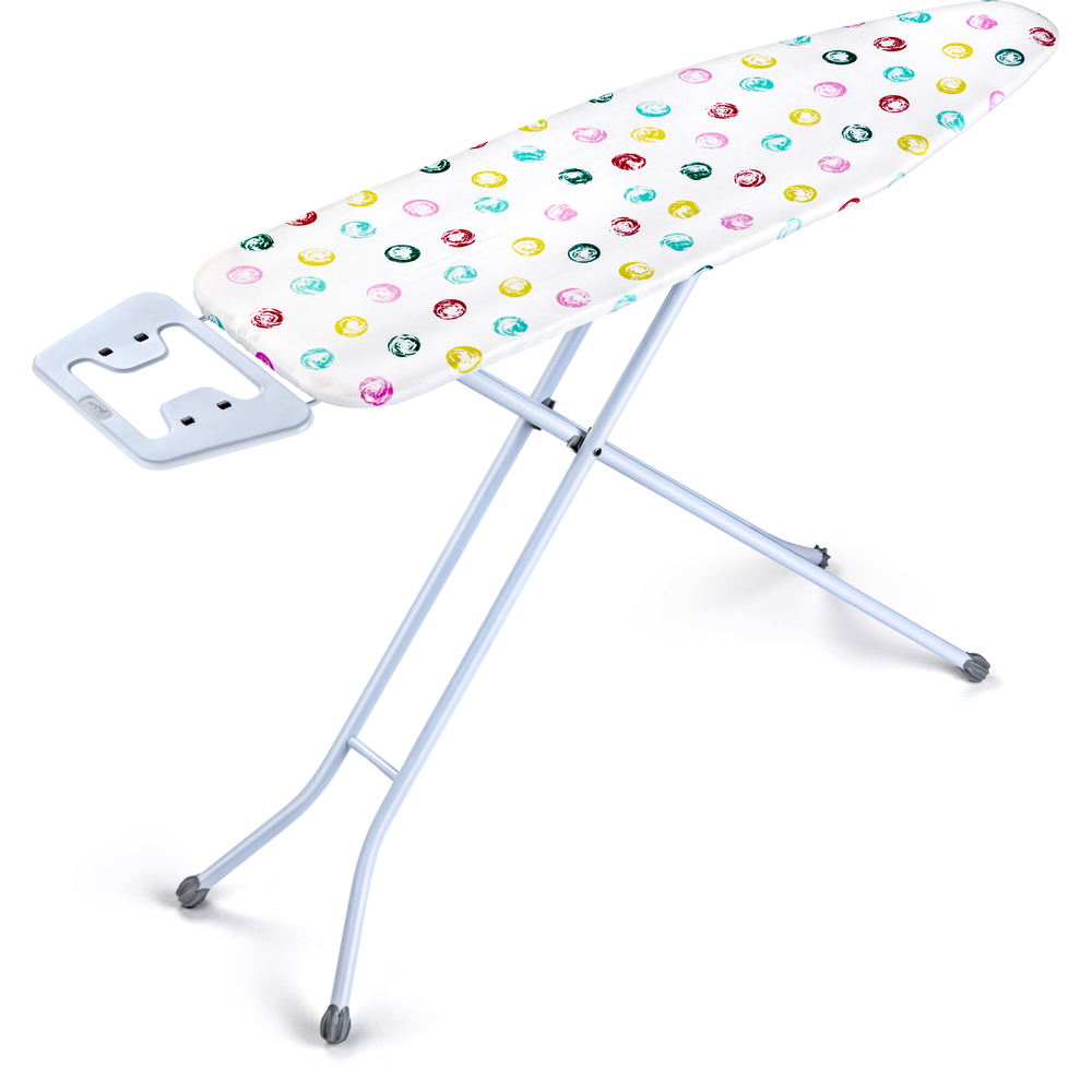 Minőségi vasalóállvány szállítási zárral, a gőzt elvezető vasalófelülettel.